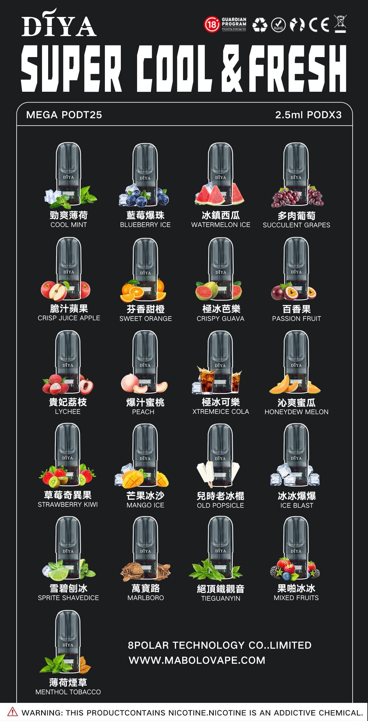 DIYA霧化彈以穩定霧化與高還原口感著稱,無論你喜愛水果、薄荷還是甜品風味,都能找到合適選擇。