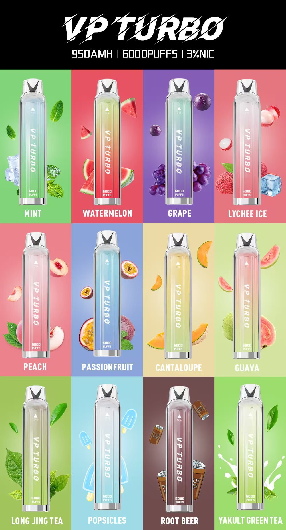 VP Turbo 6000 Puffs一次性電子煙結合大容量煙油、超長續航、便攜設計與多元口味,是追求便利與穩定體驗用戶的理想選擇。
